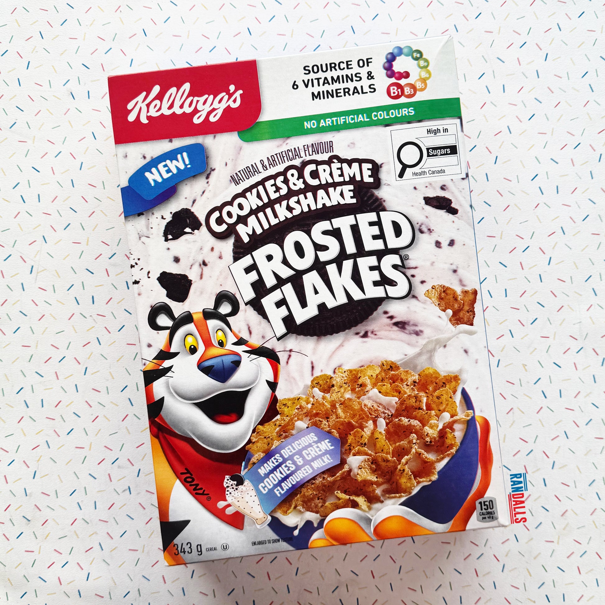 Kellogg's Frosted Flakes Cookies & Crème Milkshake Flavour Cereal is a delicious combination of Kellogg's Frosted Flakes with cocoa flavoured crunchlets that amps up the fun by turning the milk into a delicious cookies & cream milkshake flavour.